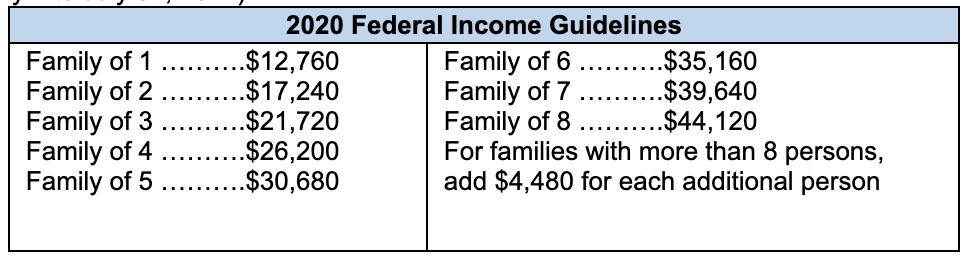 • Officials said for families with more than eight persons, the income guideline adds $4,480 for each additional person.